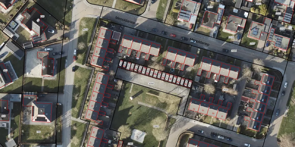 Gebruik de zoekbalk of klik op een perceel voor informatie over de adressen binnen dit perceel.