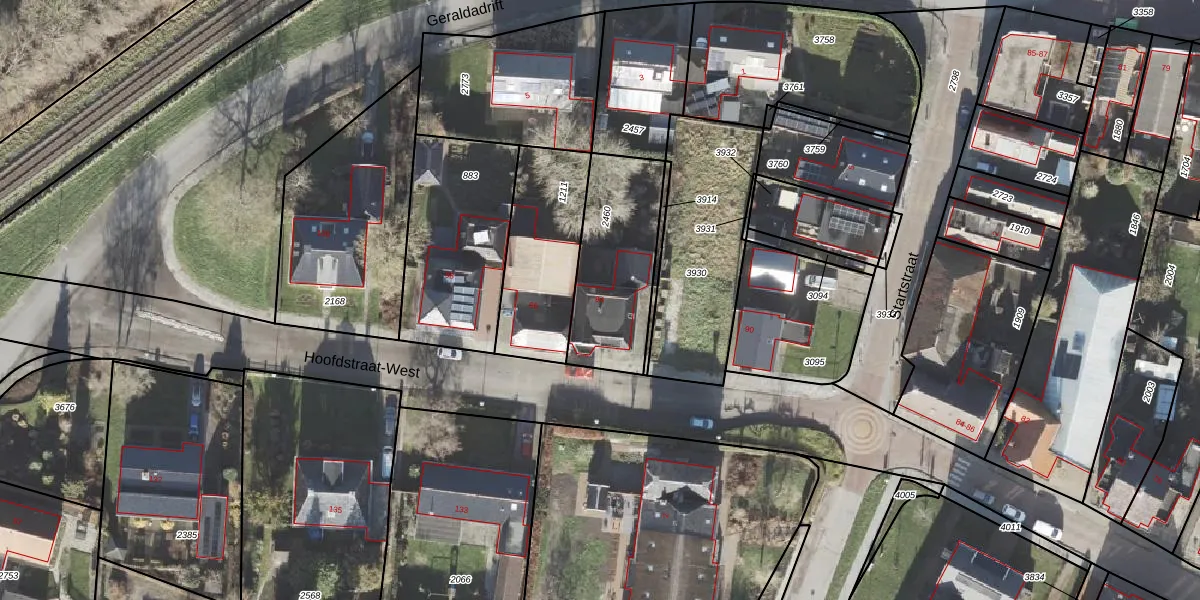 Het perceel waarop Hoofdstraat-West 94 staat heeft een oppervlakte van 440 m². Dit is een groot perceel. De perceeloppervlakte wordt geregistreerd door het Kadaster. Gedetailleerde informatie over de maten van dit perceel kunt u vinden in het rapport Kadastrale kaart met maatvoering van Hoofdstraat-West 94.