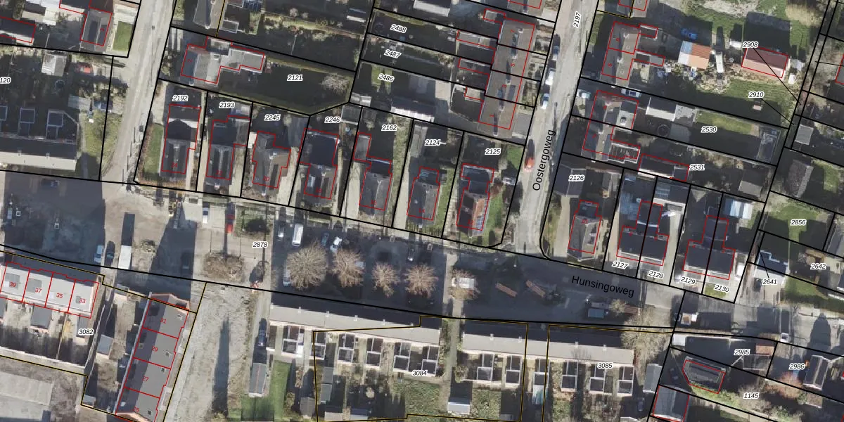Gebruik de zoekbalk of klik op een perceel voor informatie over de adressen binnen dit perceel.