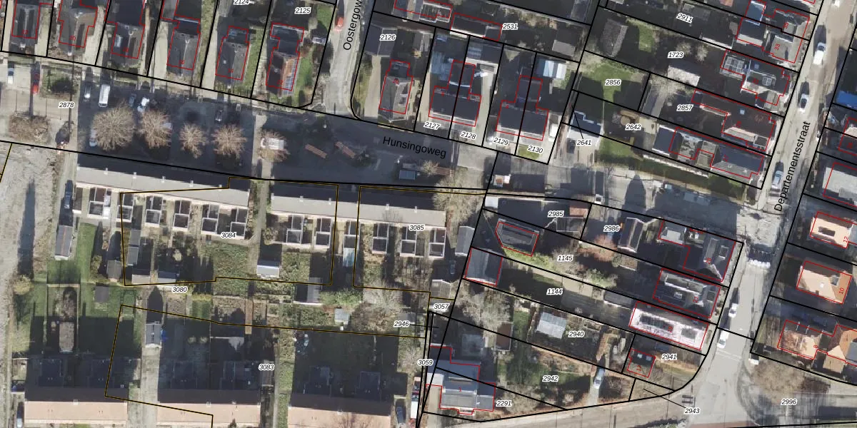 Het perceel waarop Hunsingoweg 3 staat heeft een oppervlakte van 628 m². Dit is een groot perceel. De perceeloppervlakte wordt geregistreerd door het Kadaster. Gedetailleerde informatie over de maten van dit perceel kunt u vinden in het rapport Kadastrale kaart met maatvoering van Hunsingoweg 3.