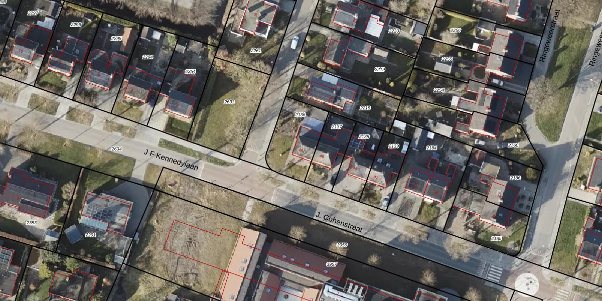 Gebruik de zoekbalk of klik op een perceel voor informatie over de adressen binnen dit perceel.