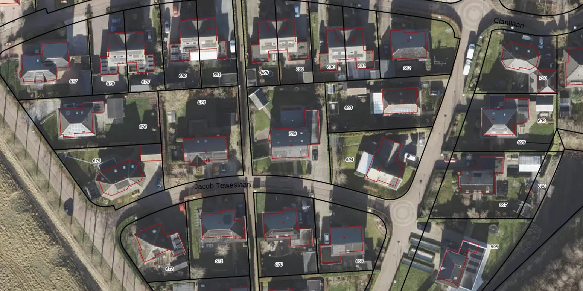 Gebruik de zoekbalk of klik op een perceel voor informatie over de adressen binnen dit perceel.