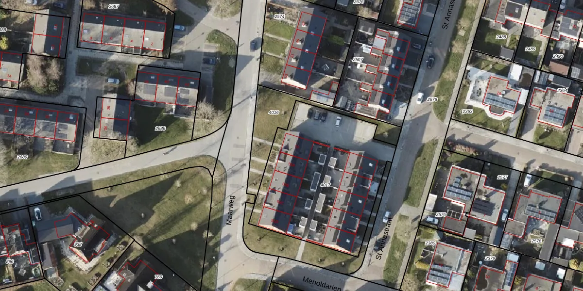 Het perceel waarop Maarweg 55 staat heeft een oppervlakte van 1734 m². Dit is een zeer groot perceel. De perceeloppervlakte wordt geregistreerd door het Kadaster. Gedetailleerde informatie over de maten van dit perceel kunt u vinden in het rapport Kadastrale kaart met maatvoering van Maarweg 55.