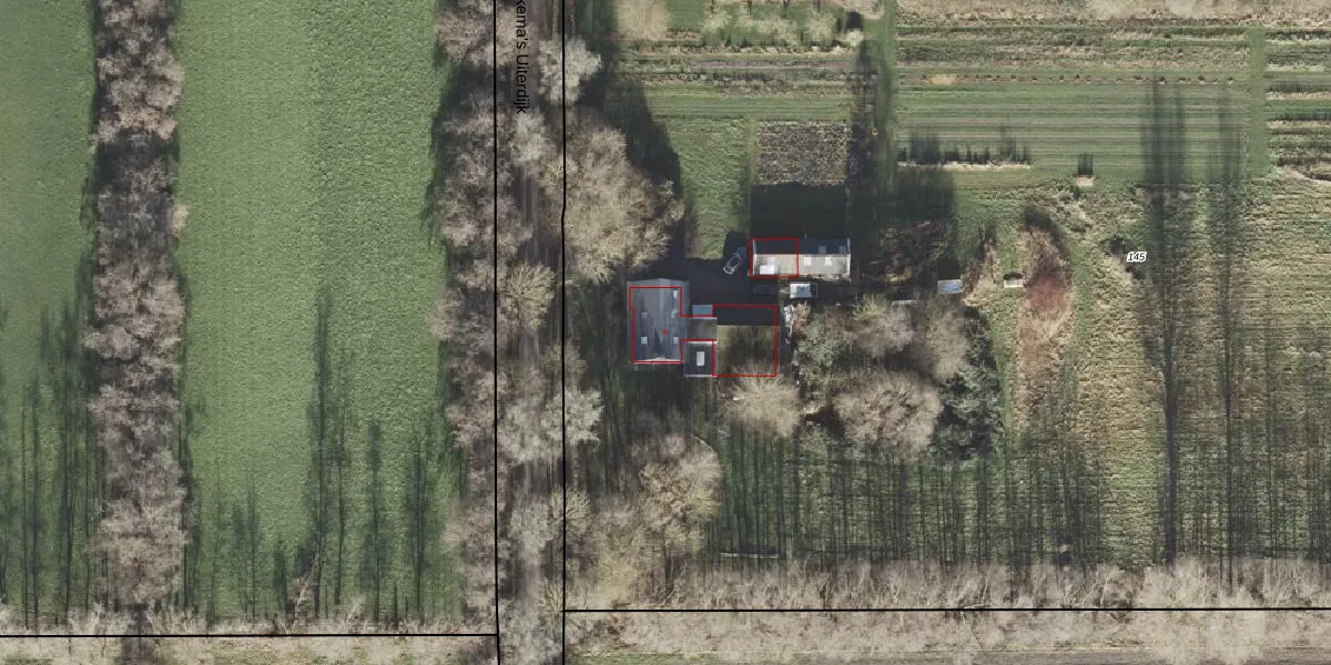 Het adres is gelegen op perceel 145 in de sectie G en de kadastrale gemeente Uithuizen. De kadastrale aanduiding is aldus UHZ01-G-145. Het perceel is 1,5 ha groot. Dat is kleiner dan de gemiddelde perceeloppervlakte in Uithuizen, dat op 4,2 ha ligt. De grootste perceeloppervlakte in de kadastrale gemeente is 96,50 km². De kleinste oppervlakte bedraagt 0 m². Er zijn geen andere adressen aanwezig op het perceel. In de Basisregistratie Kadaster (BRK) werden de grenzen van het perceel geregistreerd op 26-08-2010.