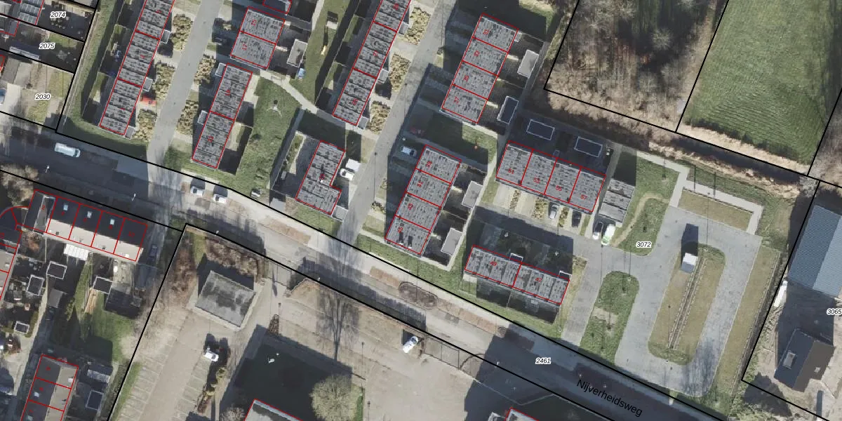 Het perceel waarop Nijverheidsweg 43 staat heeft een oppervlakte van 1,3 ha. Dit is een zeer groot perceel. De perceeloppervlakte wordt geregistreerd door het Kadaster. Gedetailleerde informatie over de maten van dit perceel kunt u vinden in het rapport Kadastrale kaart met maatvoering van Nijverheidsweg 43.