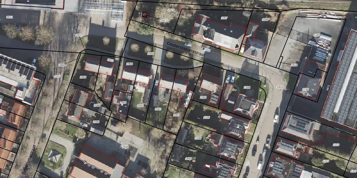 Het perceel waarop Oosterstationsstraat 15 staat heeft een oppervlakte van 417 m². Dit is een groot perceel. De perceeloppervlakte wordt geregistreerd door het Kadaster. Gedetailleerde informatie over de maten van dit perceel kunt u vinden in het rapport Kadastrale kaart met maatvoering van Oosterstationsstraat 15.