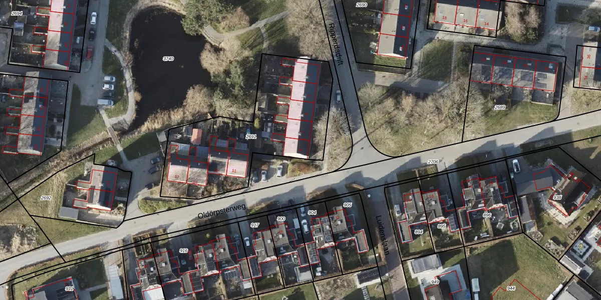 Het perceel waarop Ripperdadrift 9 staat heeft een oppervlakte van 1490 m². Dit is een zeer groot perceel. De perceeloppervlakte wordt geregistreerd door het Kadaster. Gedetailleerde informatie over de maten van dit perceel kunt u vinden in het rapport Kadastrale kaart met maatvoering van Ripperdadrift 9.