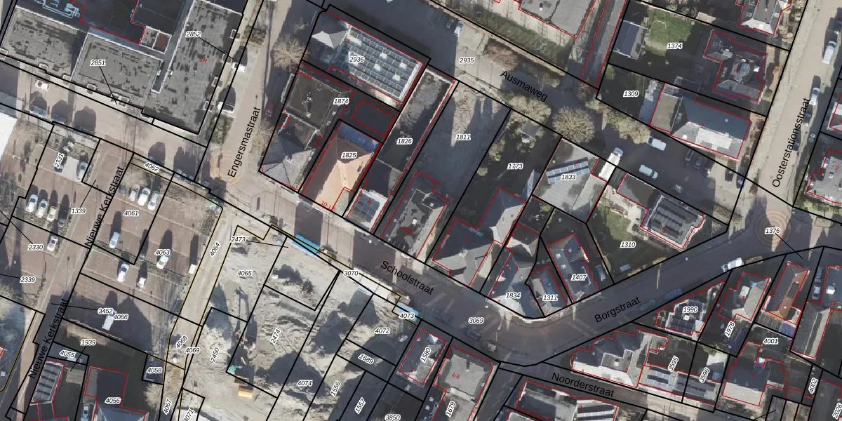Het perceel waarop Schoolstraat 6-B staat heeft een oppervlakte van 585 m². Dit is een groot perceel. De perceeloppervlakte wordt geregistreerd door het Kadaster. Gedetailleerde informatie over de maten van dit perceel kunt u vinden in het rapport Kadastrale kaart met maatvoering van Schoolstraat 6-B.