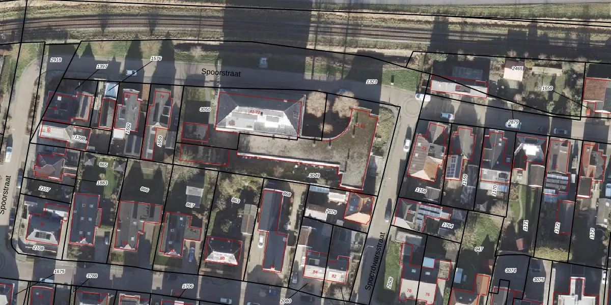 Het perceel waarop Spoorstraat 57 staat heeft een oppervlakte van 1204 m². Dit is een zeer groot perceel. De perceeloppervlakte wordt geregistreerd door het Kadaster. Gedetailleerde informatie over de maten van dit perceel kunt u vinden in het rapport Kadastrale kaart met maatvoering van Spoorstraat 57.