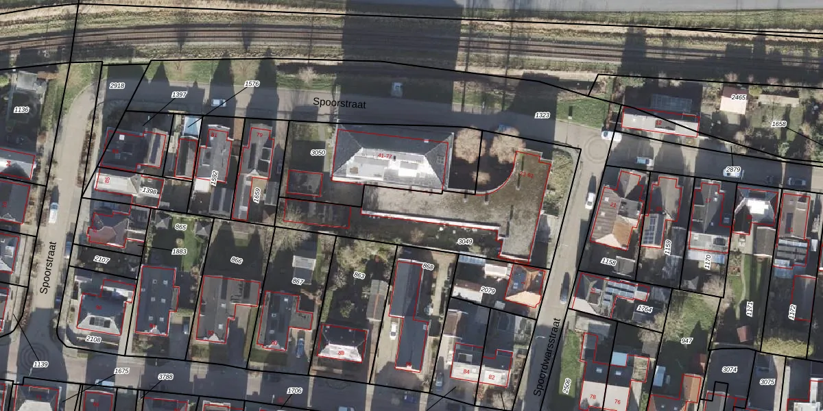 Het perceel waarop Spoorstraat 61 staat heeft een oppervlakte van 1204 m². Dit is een zeer groot perceel. De perceeloppervlakte wordt geregistreerd door het Kadaster. Gedetailleerde informatie over de maten van dit perceel kunt u vinden in het rapport Kadastrale kaart met maatvoering van Spoorstraat 61.