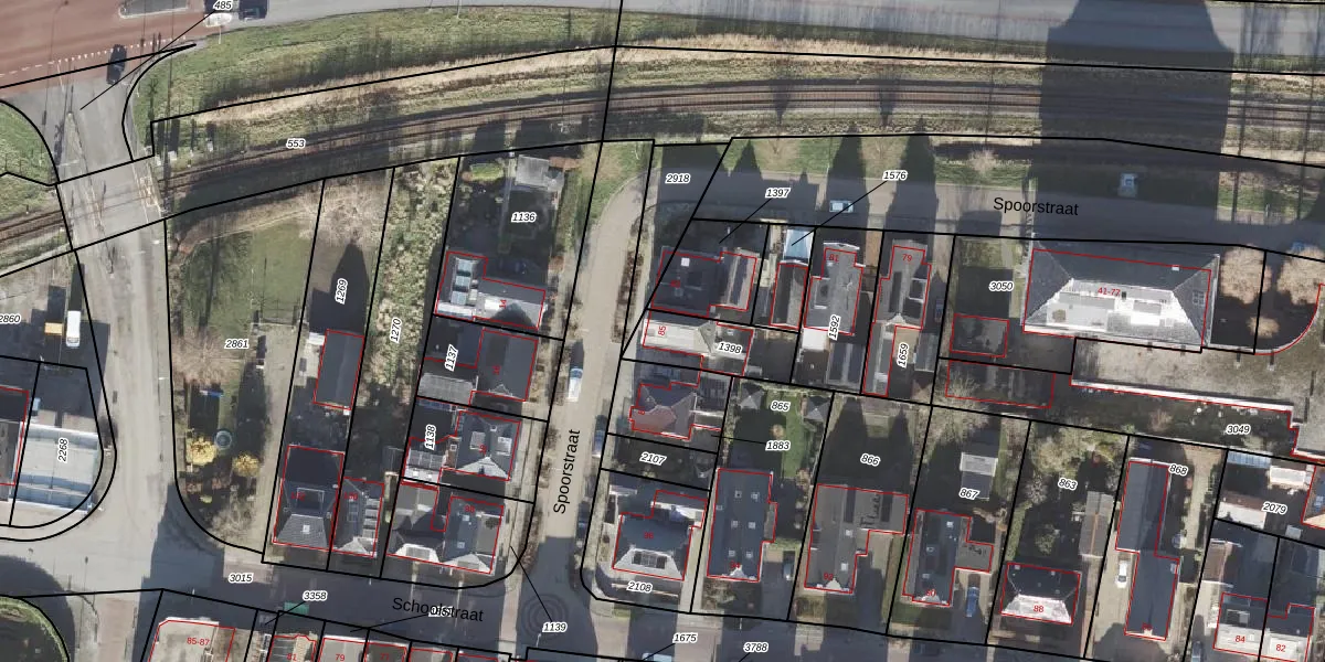 Het perceel waarop Spoorstraat 85 staat heeft een oppervlakte van 191 m². Dit is een middelgroot perceel. De perceeloppervlakte wordt geregistreerd door het Kadaster. Gedetailleerde informatie over de maten van dit perceel kunt u vinden in het rapport Kadastrale kaart met maatvoering van Spoorstraat 85.
