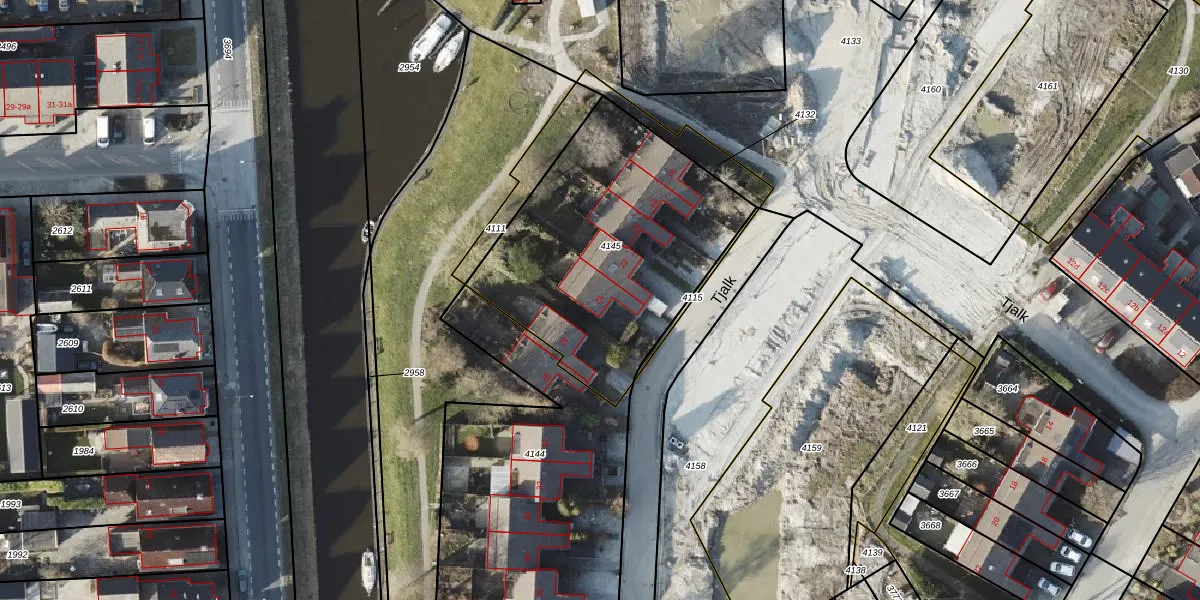 Het perceel waarop Tjalk 24 staat heeft een oppervlakte van 1256 m². Dit is een zeer groot perceel. De perceeloppervlakte wordt geregistreerd door het Kadaster. Gedetailleerde informatie over de maten van dit perceel kunt u vinden in het rapport Kadastrale kaart met maatvoering van Tjalk 24.