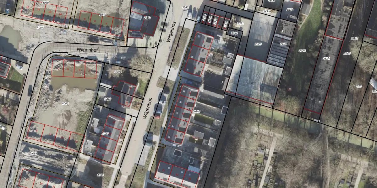 Het perceel waarop Wilgenbos 11 staat heeft een oppervlakte van 2431 m². Dit is een zeer groot perceel. De perceeloppervlakte wordt geregistreerd door het Kadaster. Gedetailleerde informatie over de maten van dit perceel kunt u vinden in het rapport Kadastrale kaart met maatvoering van Wilgenbos 11.