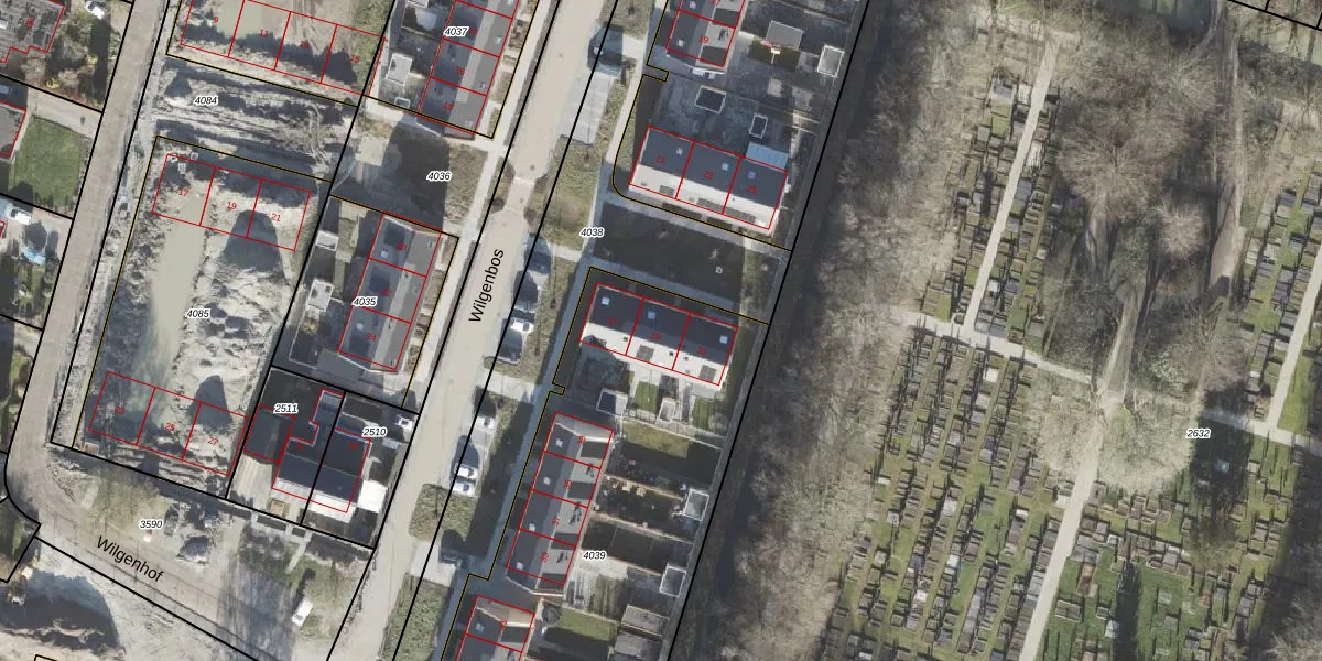 Het perceel waarop Wilgenbos 29 staat heeft een oppervlakte van 2447 m². Dit is een zeer groot perceel. De perceeloppervlakte wordt geregistreerd door het Kadaster. Gedetailleerde informatie over de maten van dit perceel kunt u vinden in het rapport Kadastrale kaart met maatvoering van Wilgenbos 29.
