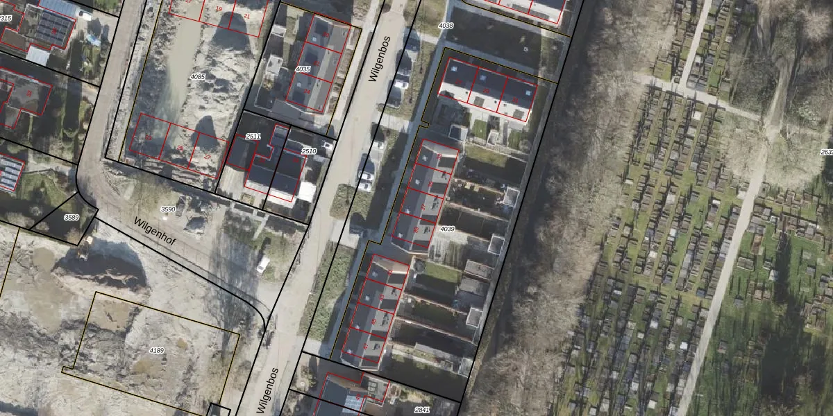 Het perceel waarop Wilgenbos 37 staat heeft een oppervlakte van 2447 m². Dit is een zeer groot perceel. De perceeloppervlakte wordt geregistreerd door het Kadaster. Gedetailleerde informatie over de maten van dit perceel kunt u vinden in het rapport Kadastrale kaart met maatvoering van Wilgenbos 37.