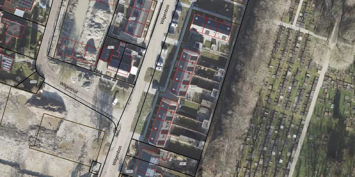 Het perceel waarop Wilgenbos 39 staat heeft een oppervlakte van 2447 m². Dit is een zeer groot perceel. De perceeloppervlakte wordt geregistreerd door het Kadaster. Gedetailleerde informatie over de maten van dit perceel kunt u vinden in het rapport Kadastrale kaart met maatvoering van Wilgenbos 39.