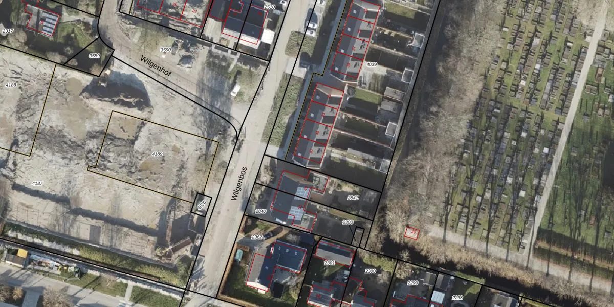 Het perceel waarop Wilgenbos 47 staat heeft een oppervlakte van 2447 m². Dit is een zeer groot perceel. De perceeloppervlakte wordt geregistreerd door het Kadaster. Gedetailleerde informatie over de maten van dit perceel kunt u vinden in het rapport Kadastrale kaart met maatvoering van Wilgenbos 47.