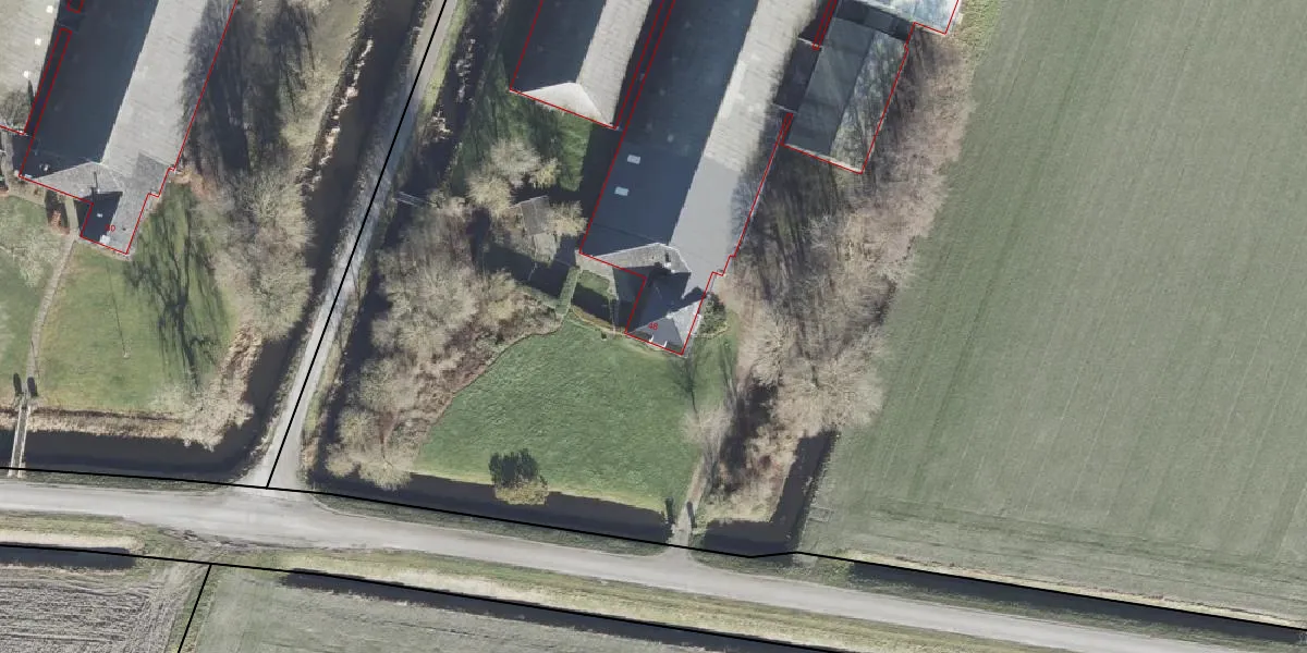 Het adres is gelegen op perceel 3 in de sectie I en de kadastrale gemeente Uithuizermeeden. De kadastrale aanduiding is aldus UHZ02-I-3. Het perceel is met 3,7 ha relatief groot. Het gemiddelde ligt in de kadastrale gemeente Uithuizermeeden op 1,6 ha. De grootste perceeloppervlakte in de kadastrale gemeente is 2,15 km². De kleinste oppervlakte bedraagt 0 m². Dit is het enige adres dat aanwezig is op het perceel. In de Basisregistratie Kadaster (BRK) werden de grenzen van het perceel geregistreerd op 30-01-2001.