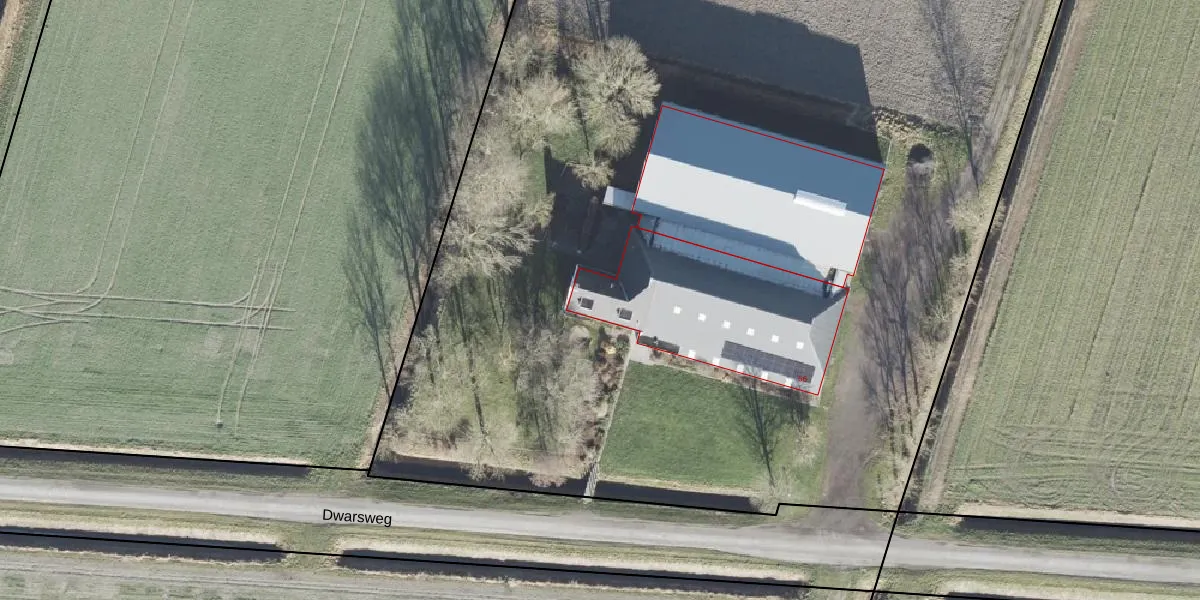 Het perceel waarop Dwarsweg 56 staat heeft een oppervlakte van 1,9 ha. Dit is een zeer groot perceel. De perceeloppervlakte wordt geregistreerd door het Kadaster. Gedetailleerde informatie over de maten van dit perceel kunt u vinden in het rapport Kadastrale kaart met maatvoering van Dwarsweg 56.