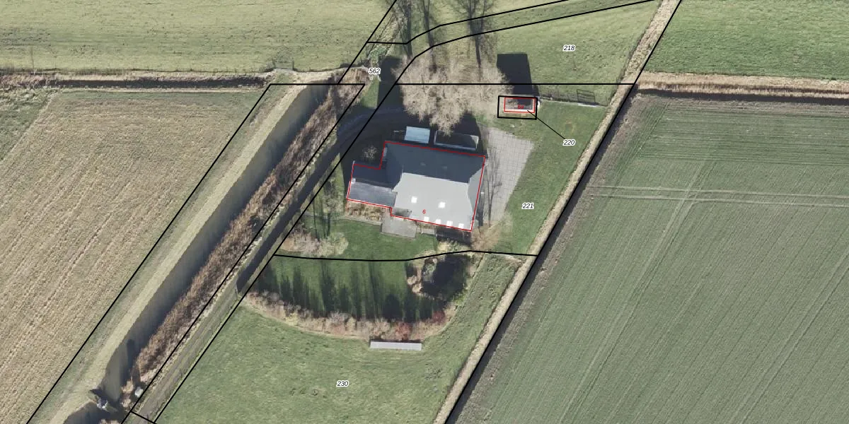 Het adres is gelegen op perceel 221 in de sectie I en de kadastrale gemeente Uithuizermeeden. De kadastrale aanduiding is aldus UHZ02-I-221. De gemiddelde perceelgrootte in Uithuizermeeden is 1,6 ha. Dit perceel is kleiner: de perceeloppervlakte bedraagt 2375 m². De grootste perceeloppervlakte in de kadastrale gemeente is 2,15 km². De kleinste oppervlakte bedraagt 0 m². Op het perceel bevinden zich geen andere adressen. De laatste wijziging in het de Basisregistratie Kadaster (BRK) was op 19-04-2001.
