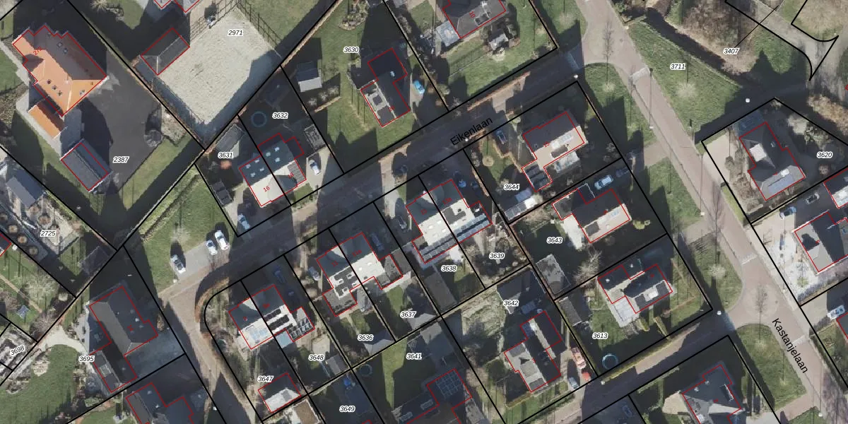 Het perceel waarop Eikenlaan 13 staat heeft een oppervlakte van 384 m². Dit is een groot perceel. De perceeloppervlakte wordt geregistreerd door het Kadaster. Gedetailleerde informatie over de maten van dit perceel kunt u vinden in het rapport Kadastrale kaart met maatvoering van Eikenlaan 13.