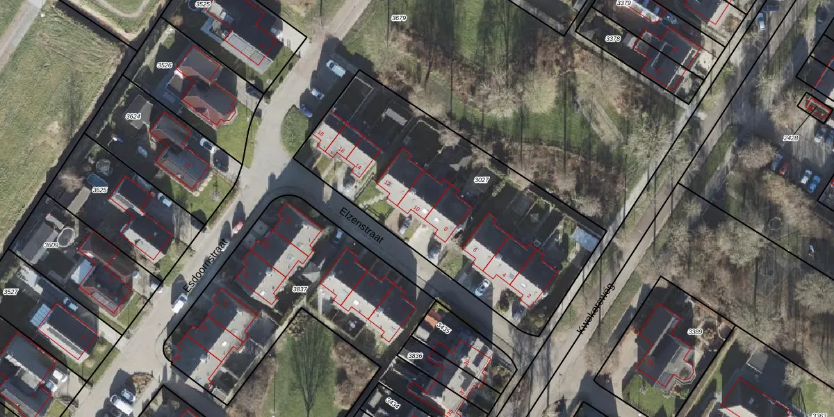 Het perceel waarop Elzenstraat 10 staat heeft een oppervlakte van 2080 m². Dit is een zeer groot perceel. De perceeloppervlakte wordt geregistreerd door het Kadaster. Gedetailleerde informatie over de maten van dit perceel kunt u vinden in het rapport Kadastrale kaart met maatvoering van Elzenstraat 10.
