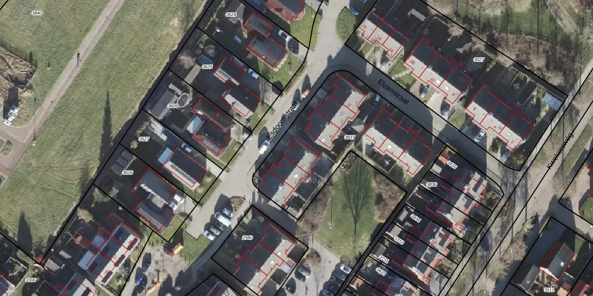 Esdoornstraat 12 is gelegen op kadastraal perceel UHZ02G3837. Deze kadastrale aanduiding is uniek en wordt gebruikt door het Kadaster om eigendomsrechten en andere zakelijke rechten vast te leggen. Het perceel maakt onderdeel uit van de kadastrale gemeente Uithuizermeeden.