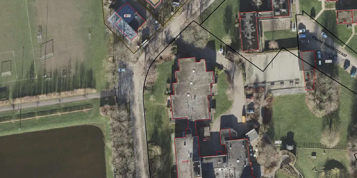 Het perceel waarop Grote Hadderstraat 2-G staat heeft een oppervlakte van 1,6 ha. Dit is een zeer groot perceel. De perceeloppervlakte wordt geregistreerd door het Kadaster. Gedetailleerde informatie over de maten van dit perceel kunt u vinden in het rapport Kadastrale kaart met maatvoering van Grote Hadderstraat 2-G.