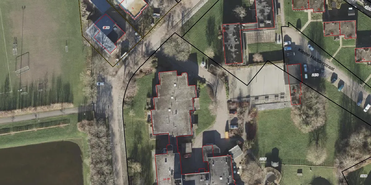 Het perceel waarop Grote Hadderstraat 2-M staat heeft een oppervlakte van 1,6 ha. Dit is een zeer groot perceel. De perceeloppervlakte wordt geregistreerd door het Kadaster. Gedetailleerde informatie over de maten van dit perceel kunt u vinden in het rapport Kadastrale kaart met maatvoering van Grote Hadderstraat 2-M.