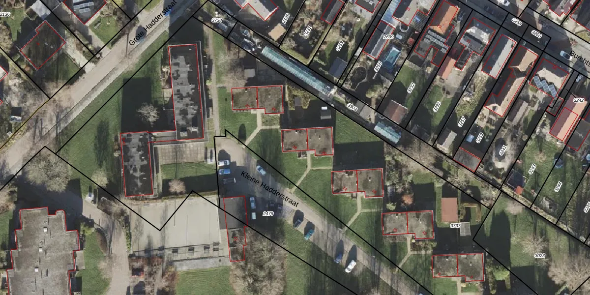 Kleine Hadderstraat 18 is gelegen op kadastraal perceel UHZ02G3737. Deze kadastrale aanduiding is uniek en wordt gebruikt door het Kadaster om eigendomsrechten en andere zakelijke rechten vast te leggen. Het perceel maakt onderdeel uit van de kadastrale gemeente Uithuizermeeden.