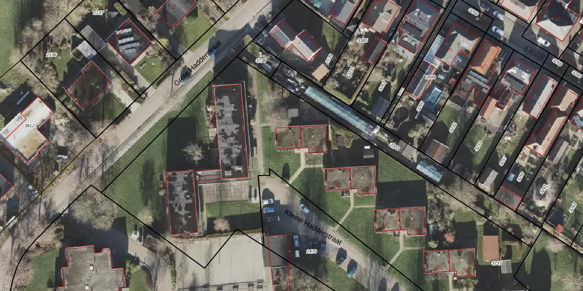 Het perceel waarop Kleine Hadderstraat 22 staat heeft een oppervlakte van 6209 m². Dit is een zeer groot perceel. De perceeloppervlakte wordt geregistreerd door het Kadaster. Gedetailleerde informatie over de maten van dit perceel kunt u vinden in het rapport Kadastrale kaart met maatvoering van Kleine Hadderstraat 22.