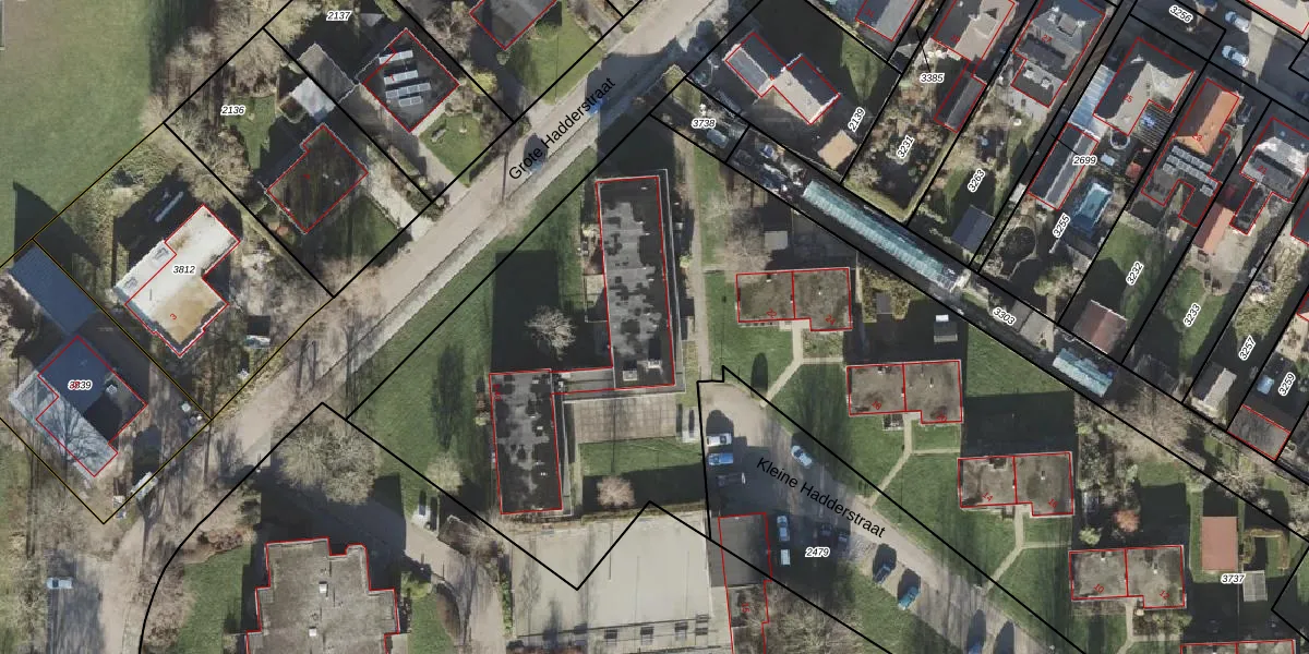 Het perceel waarop Kleine Hadderstraat 30 staat heeft een oppervlakte van 6209 m². Dit is een zeer groot perceel. De perceeloppervlakte wordt geregistreerd door het Kadaster. Gedetailleerde informatie over de maten van dit perceel kunt u vinden in het rapport Kadastrale kaart met maatvoering van Kleine Hadderstraat 30.