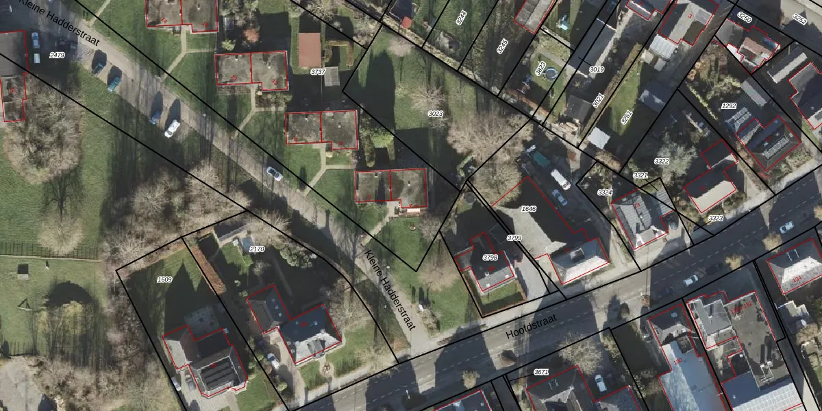 Het perceel waarop Kleine Hadderstraat 4 staat heeft een oppervlakte van 6209 m². Dit is een zeer groot perceel. De perceeloppervlakte wordt geregistreerd door het Kadaster. Gedetailleerde informatie over de maten van dit perceel kunt u vinden in het rapport Kadastrale kaart met maatvoering van Kleine Hadderstraat 4.