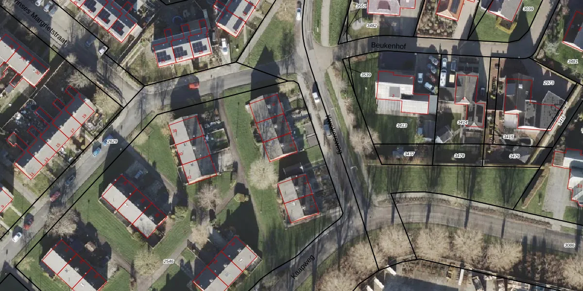 Het perceel waarop Kwekersweg 5 staat heeft een oppervlakte van 6432 m². Dit is een zeer groot perceel. De perceeloppervlakte wordt geregistreerd door het Kadaster. Gedetailleerde informatie over de maten van dit perceel kunt u vinden in het rapport Kadastrale kaart met maatvoering van Kwekersweg 5.
