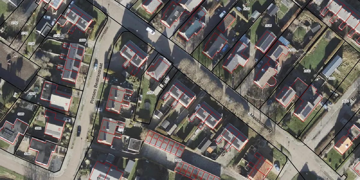 Het perceel waarop Meidoornweg 22 staat heeft een oppervlakte van 7554 m². Dit is een zeer groot perceel. De perceeloppervlakte wordt geregistreerd door het Kadaster. Gedetailleerde informatie over de maten van dit perceel kunt u vinden in het rapport Kadastrale kaart met maatvoering van Meidoornweg 22.