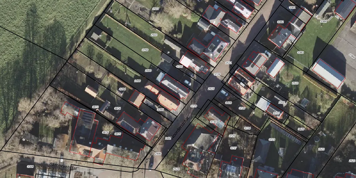 Noorderstraat 9 is gelegen op kadastraal perceel UHZ02G2500. Deze kadastrale aanduiding is uniek en wordt gebruikt door het Kadaster om eigendomsrechten en andere zakelijke rechten vast te leggen. Het perceel maakt onderdeel uit van de kadastrale gemeente Uithuizermeeden.