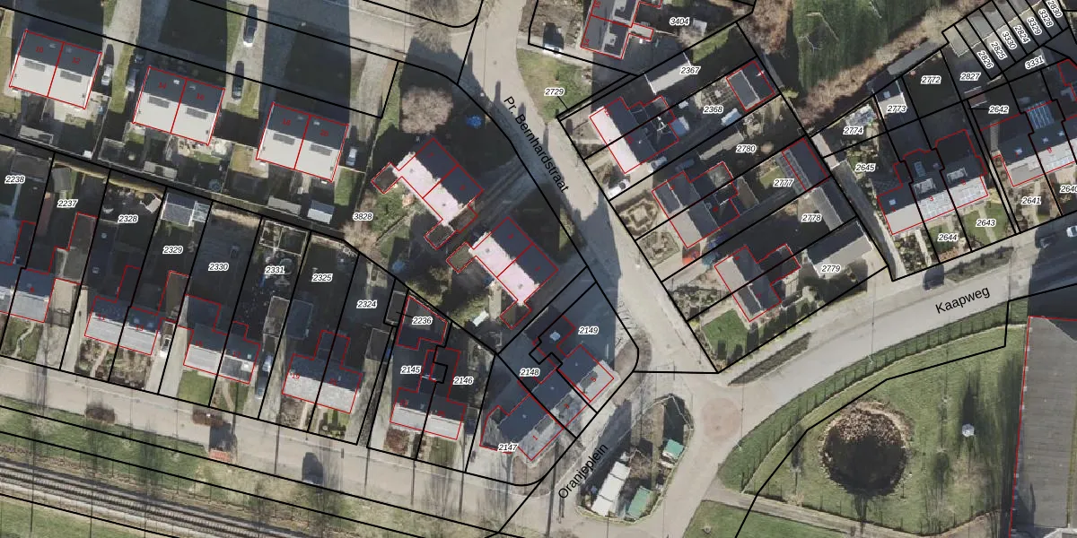 Het perceel waarop Pr. Bernhardstraat 1 staat heeft een oppervlakte van 3560 m². Dit is een zeer groot perceel. De perceeloppervlakte wordt geregistreerd door het Kadaster. Gedetailleerde informatie over de maten van dit perceel kunt u vinden in het rapport Kadastrale kaart met maatvoering van Pr. Bernhardstraat 1.