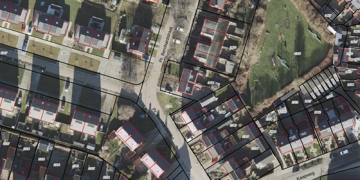 Het perceel waarop Pr. Bernhardstraat 14 staat heeft een oppervlakte van 564 m². Dit is een groot perceel. De perceeloppervlakte wordt geregistreerd door het Kadaster. Gedetailleerde informatie over de maten van dit perceel kunt u vinden in het rapport Kadastrale kaart met maatvoering van Pr. Bernhardstraat 14.