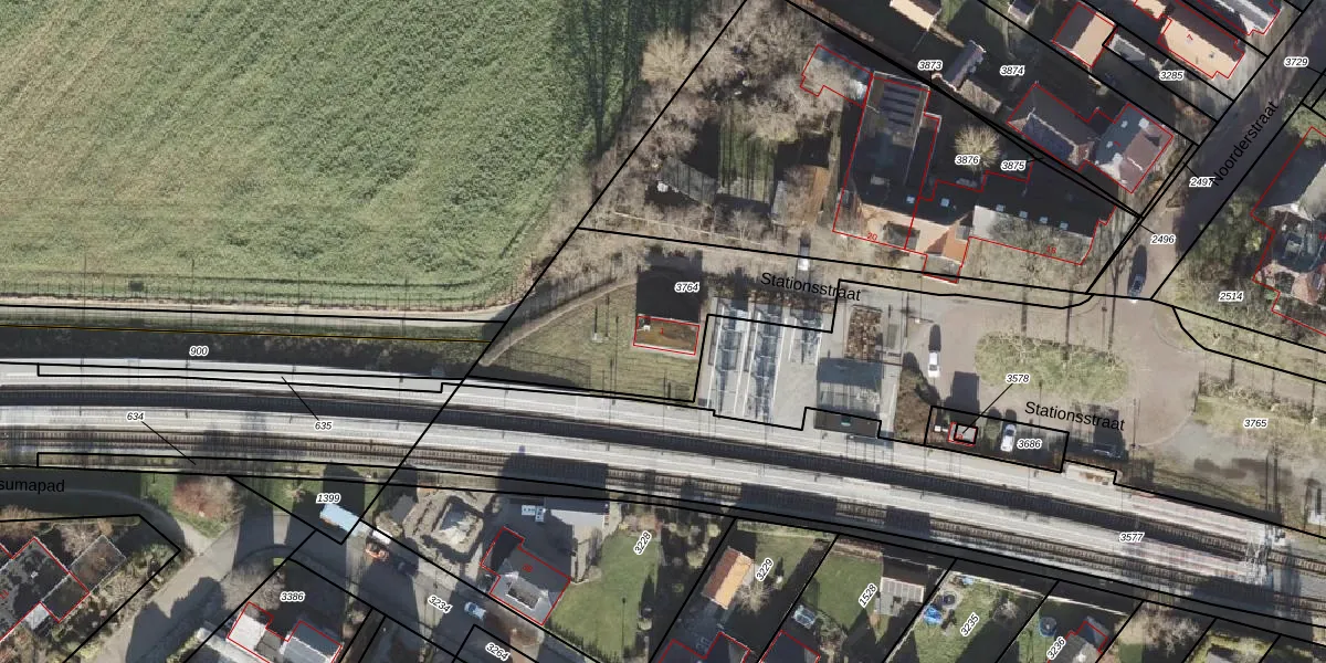 Het perceel waarop Stationsstraat 1 staat heeft een oppervlakte van 970 m². Dit is een groot perceel. De perceeloppervlakte wordt geregistreerd door het Kadaster. Gedetailleerde informatie over de maten van dit perceel kunt u vinden in het rapport Kadastrale kaart met maatvoering van Stationsstraat 1.