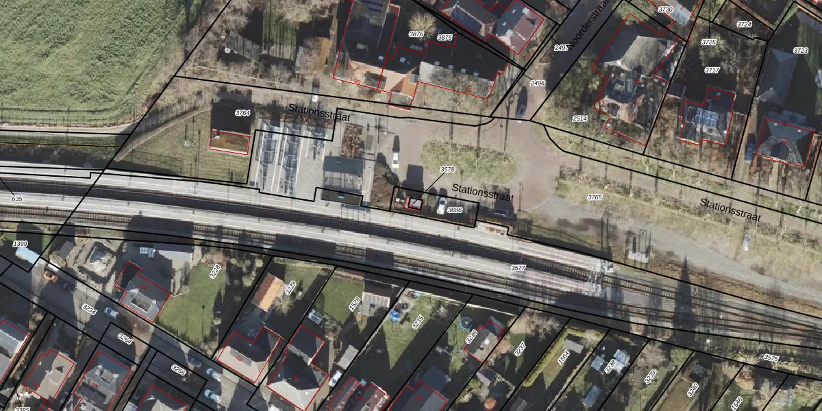 Het perceel waarop Stationsstraat 1-A staat heeft een oppervlakte van 7 m². Dit is een klein perceel. De perceeloppervlakte wordt geregistreerd door het Kadaster. Gedetailleerde informatie over de maten van dit perceel kunt u vinden in het rapport Kadastrale kaart met maatvoering van Stationsstraat 1-A.
