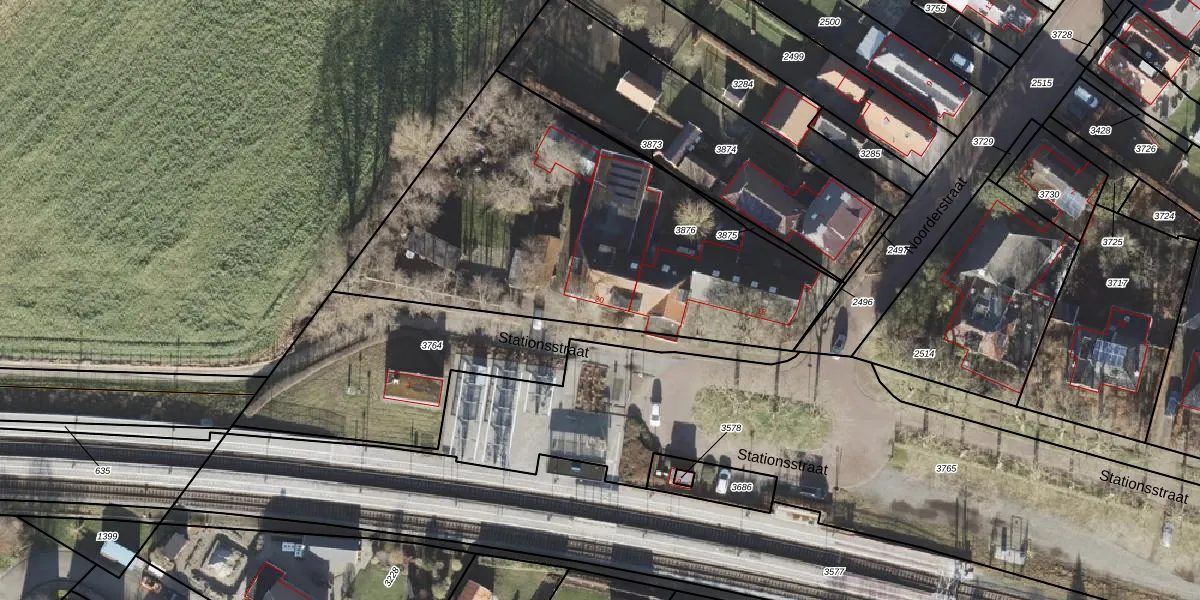 Het perceel waarop Stationsstraat 20 staat heeft een oppervlakte van 2008 m². Dit is een zeer groot perceel. De perceeloppervlakte wordt geregistreerd door het Kadaster. Gedetailleerde informatie over de maten van dit perceel kunt u vinden in het rapport Kadastrale kaart met maatvoering van Stationsstraat 20.