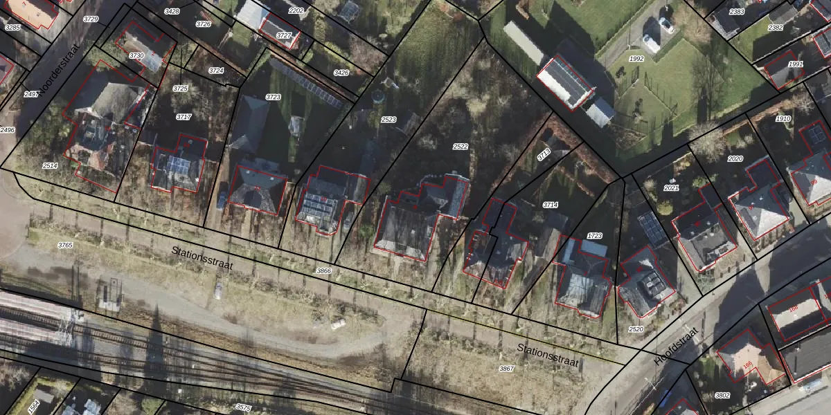 Het perceel waarop Stationsstraat 8 staat heeft een oppervlakte van 1420 m². Dit is een zeer groot perceel. De perceeloppervlakte wordt geregistreerd door het Kadaster. Gedetailleerde informatie over de maten van dit perceel kunt u vinden in het rapport Kadastrale kaart met maatvoering van Stationsstraat 8.