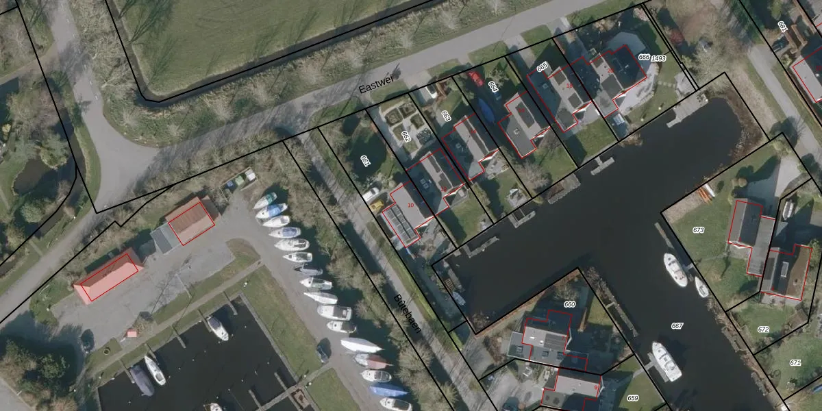 Het perceel waarop Eastwei 10 staat heeft een oppervlakte van 608 m². Dit is een groot perceel. De perceeloppervlakte wordt geregistreerd door het Kadaster. Gedetailleerde informatie over de maten van dit perceel kunt u vinden in het rapport Kadastrale kaart met maatvoering van Eastwei 10.