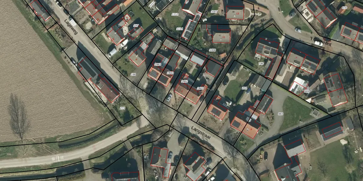 Het perceel waarop Langstraat 1 staat heeft een oppervlakte van 313 m². Dit is een groot perceel. De perceeloppervlakte wordt geregistreerd door het Kadaster. Gedetailleerde informatie over de maten van dit perceel kunt u vinden in het rapport Kadastrale kaart met maatvoering van Langstraat 1.