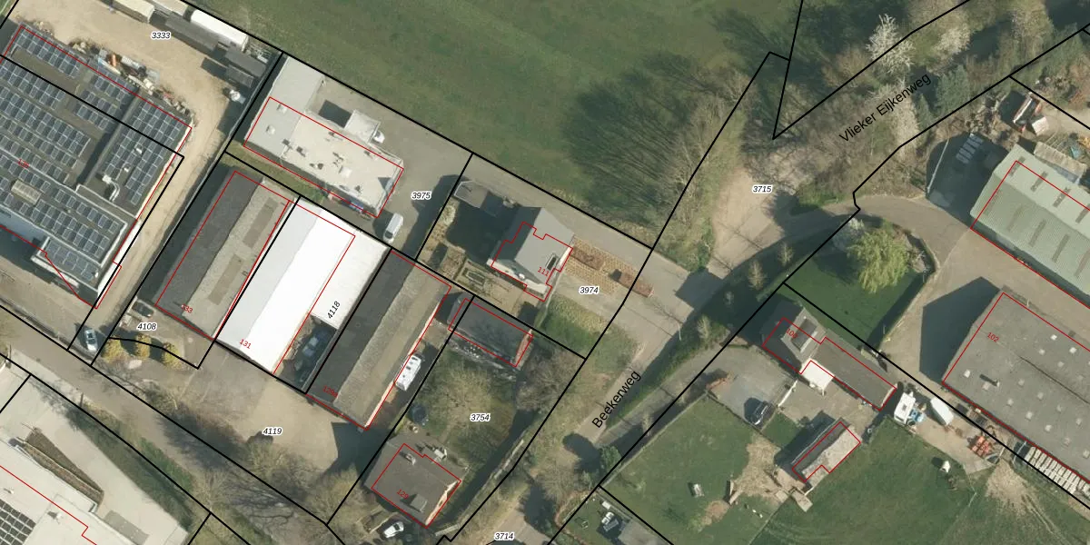 Beekerweg 111 is gelegen op kadastraal perceel ULS00B3974. Deze kadastrale aanduiding is uniek en wordt gebruikt door het Kadaster om eigendomsrechten en andere zakelijke rechten vast te leggen. Het perceel maakt onderdeel uit van de kadastrale gemeente Ulestraten.