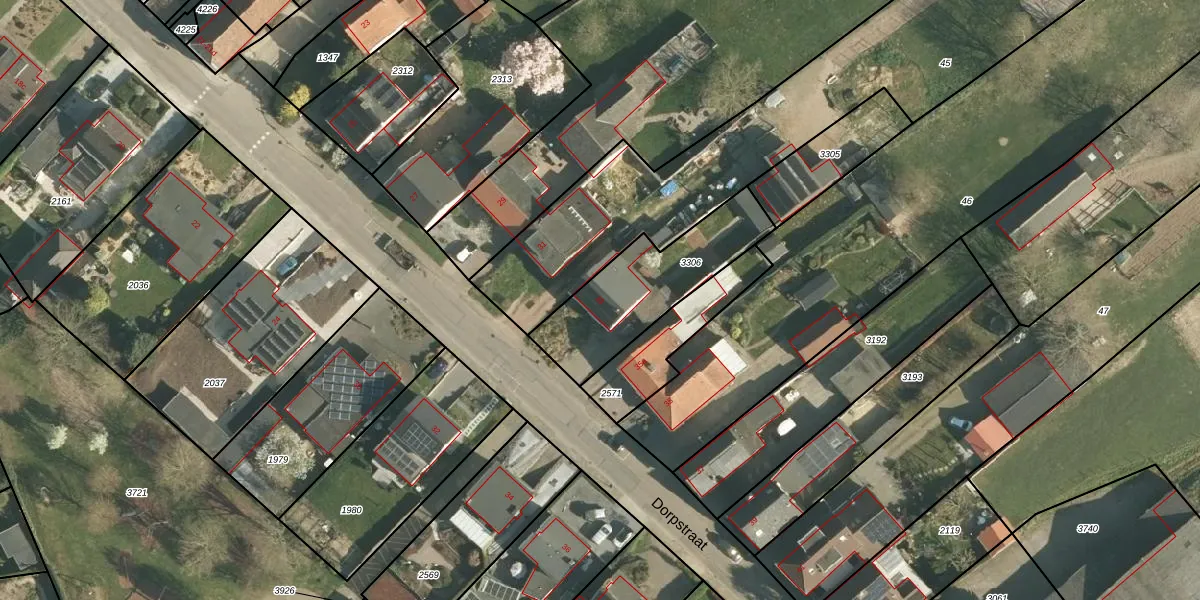 Dorpstraat 33 is gelegen op kadastraal perceel ULS00B3306. Deze kadastrale aanduiding is uniek en wordt gebruikt door het Kadaster om eigendomsrechten en andere zakelijke rechten vast te leggen. Het perceel maakt onderdeel uit van de kadastrale gemeente Ulestraten.