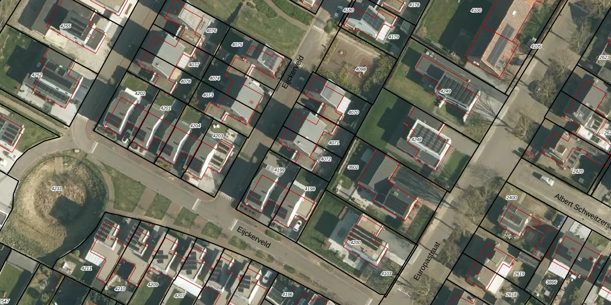 Gebruik de zoekbalk of klik op een perceel voor informatie over de adressen binnen dit perceel.