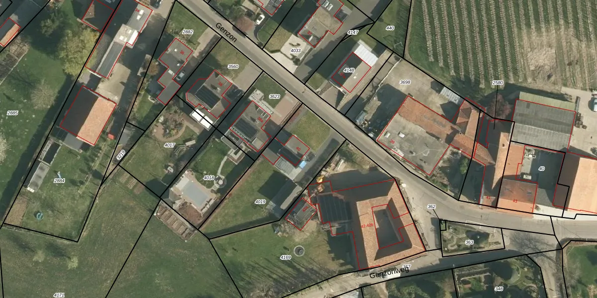 Genzon 40 is gelegen op kadastraal perceel ULS00B4019. Deze kadastrale aanduiding is uniek en wordt gebruikt door het Kadaster om eigendomsrechten en andere zakelijke rechten vast te leggen. Het perceel maakt onderdeel uit van de kadastrale gemeente Ulestraten.