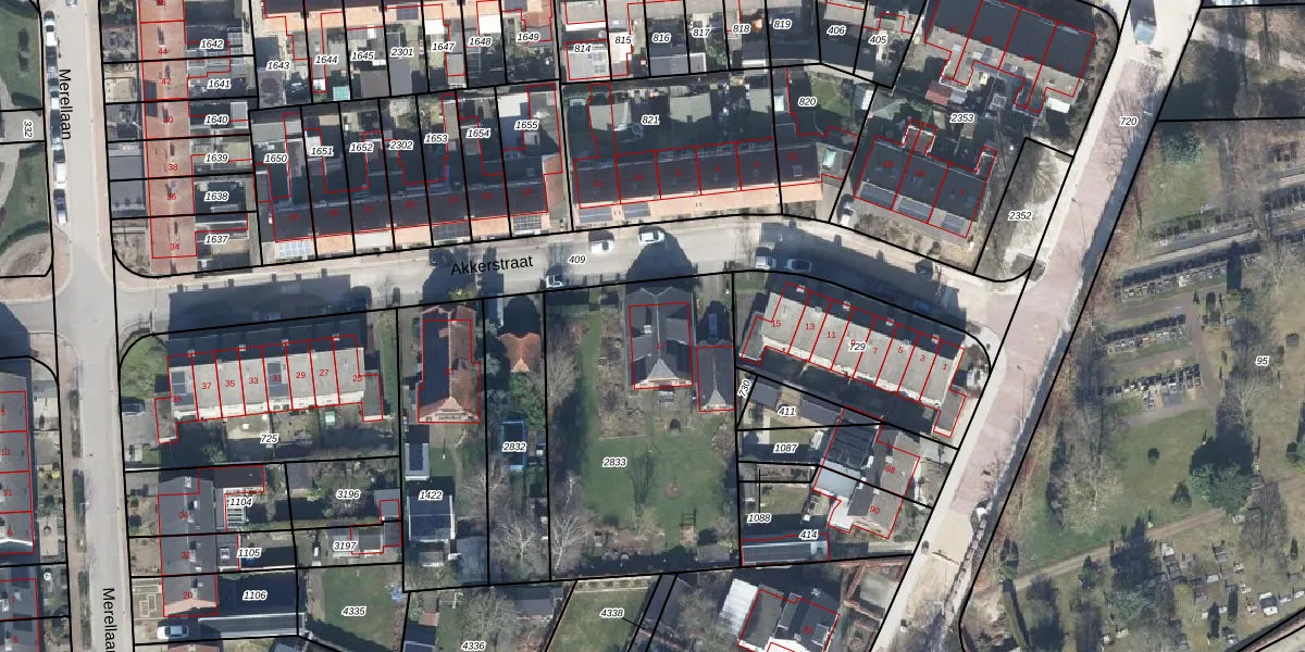 Het perceel waarop Akkerstraat 17 staat heeft een oppervlakte van 1295 m². Dit is een zeer groot perceel. De perceeloppervlakte wordt geregistreerd door het Kadaster. Gedetailleerde informatie over de maten van dit perceel kunt u vinden in het rapport Kadastrale kaart met maatvoering van Akkerstraat 17.