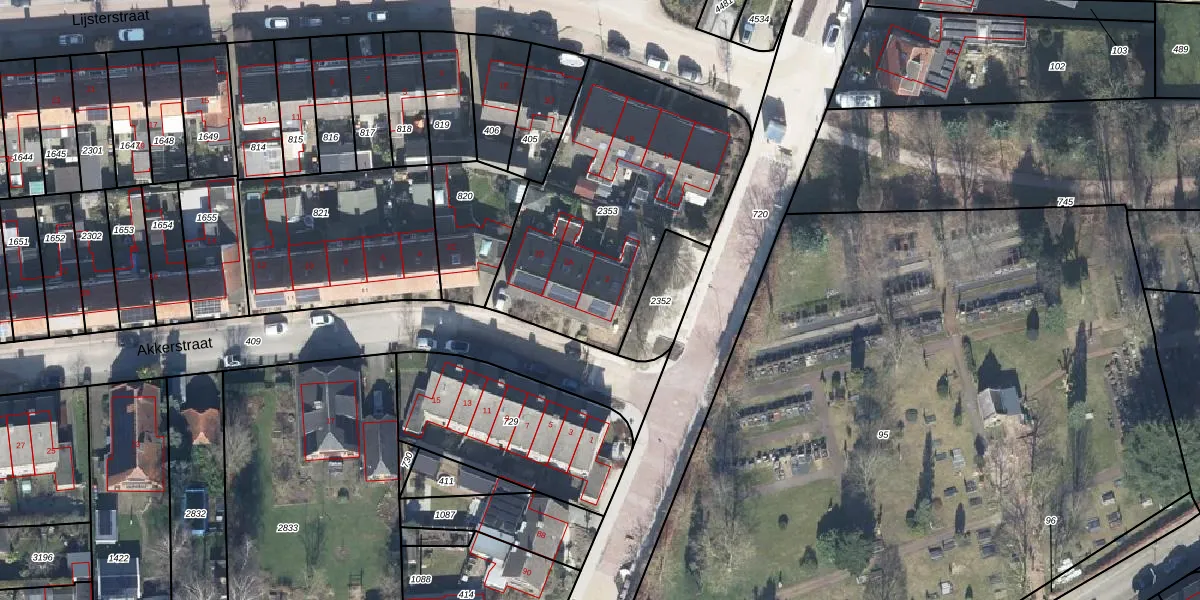 Het perceel waarop Akkerstraat 2 staat heeft een oppervlakte van 1195 m². Dit is een zeer groot perceel. De perceeloppervlakte wordt geregistreerd door het Kadaster. Gedetailleerde informatie over de maten van dit perceel kunt u vinden in het rapport Kadastrale kaart met maatvoering van Akkerstraat 2.